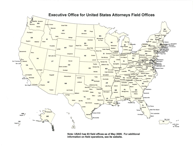 - Manage the United States Attorneys’ appropriation, including direct and indirect budget authority and personnel resources. Provide budget and fiscal assistance and guidance to the 94 Offices of the United States Attorneys.