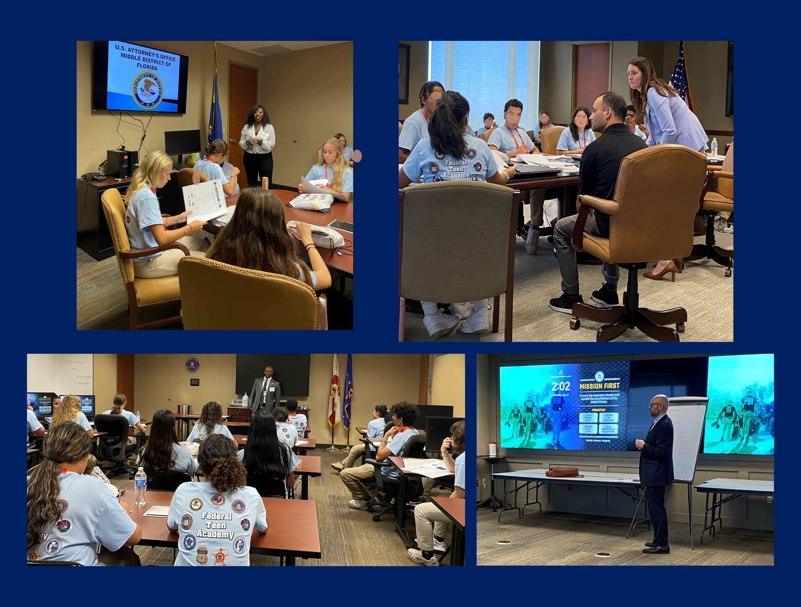 The U.S. Attorney's Office partnered with the FBI, the Bureau of Alcohol, Tobacco, Firearms and Explosives, Homeland Security Investigations, the Drug Enforcement Administration, the U.S. Marshals Service, and the U.S. Secret Service to present the 2025 Federal Teen Academy, sponsored by the FBI Tampa Citizen’s Academy Alumni Association.