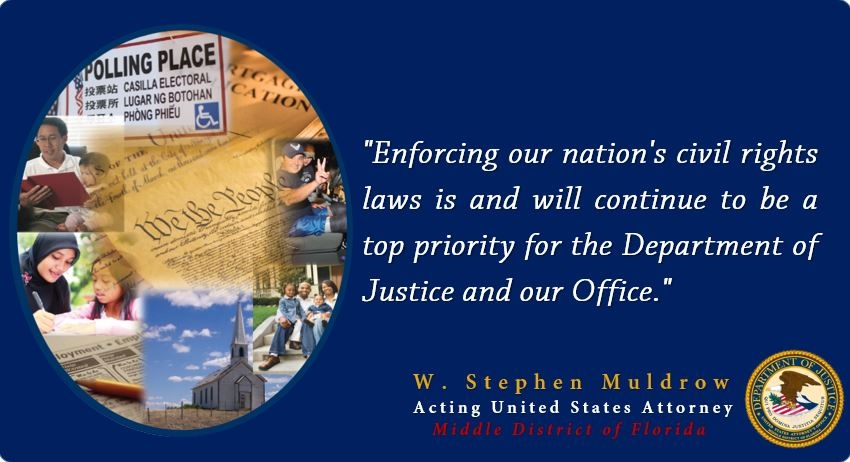 Acting U.S. Attorney W. Stephen Muldrow added, "Enforcing our nation's civil rights laws is and will continue to be a top priority for the Department of Justice and our Office."