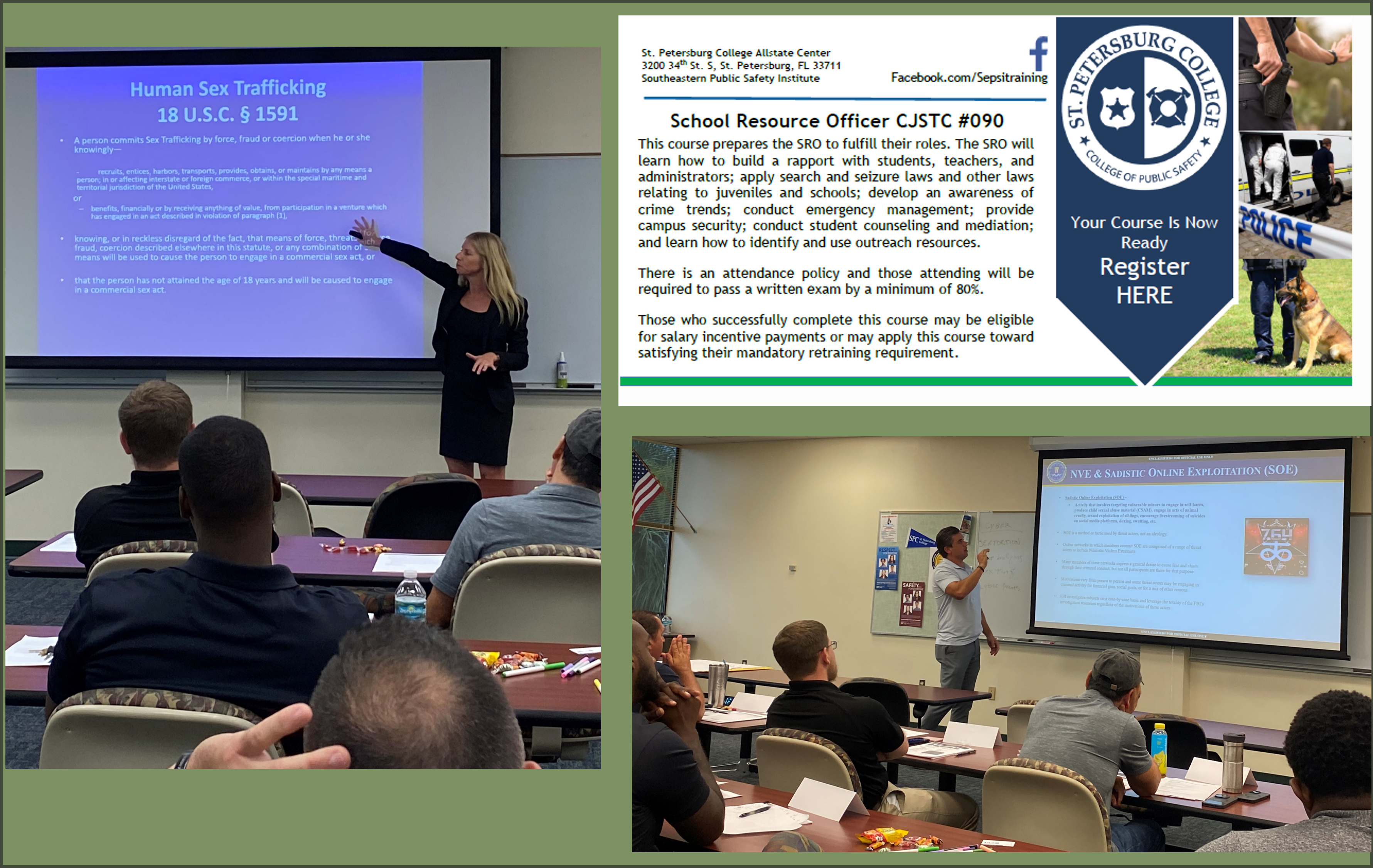 AUSA Courtney Derry joined FBI Special Agents at the St. Petersburg College of Public Safety during a training for new Tampa Bay area school resource officers (SROs). AUSA Derry delivered presentations on Current Trends in Human Trafficking and Online Safety, along with information about Current Trends in Cyber Crime from the FBI. These presentations were part of a weeklong training course intended to prepare SROs for their new roles. Sixteen SROs were in attendance from across the Middle District of Florida.