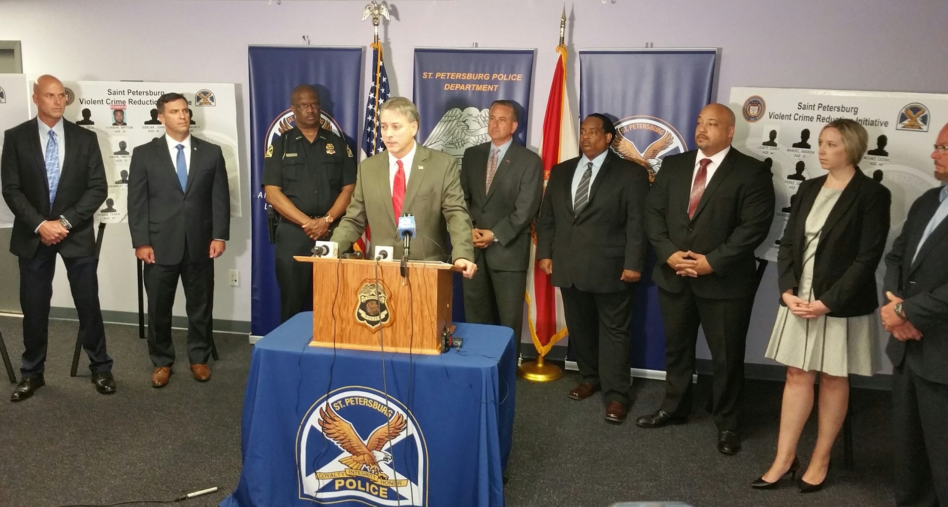 During a joint press conference today, Acting U.S. Attorney Muldrow, ATF Special Agent in Charge Daryl R. McCrary, Chief Anthony Holloway of the St. Petersburg Police Department, and State Attorney Bernie McCabe of the Sixth Judicial Circuit announced the culmination of a long-term firearms, drug trafficking, and violent crime operation dubbed the St. Petersburg Violent Crime Reduction Initiative. This eight-month initiative yielded federal charges for 35 individuals and state charges for 9 individuals.